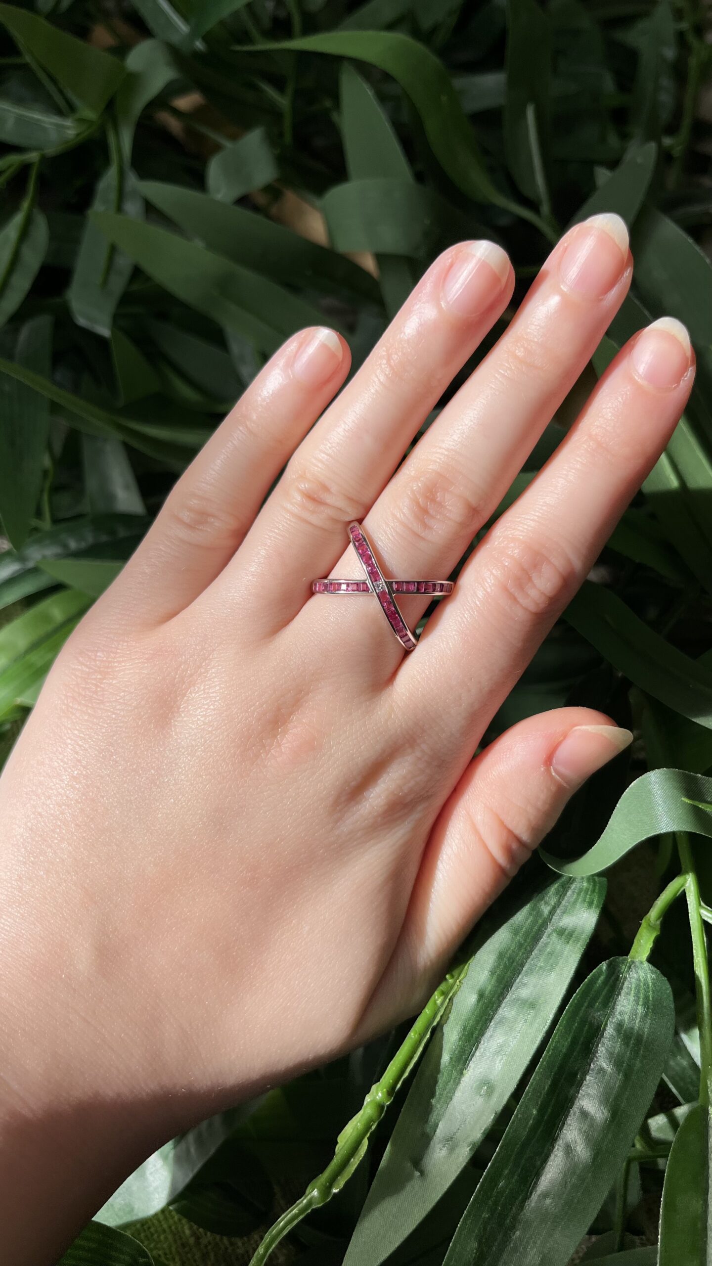 18k white gold natural diamond natural ruby