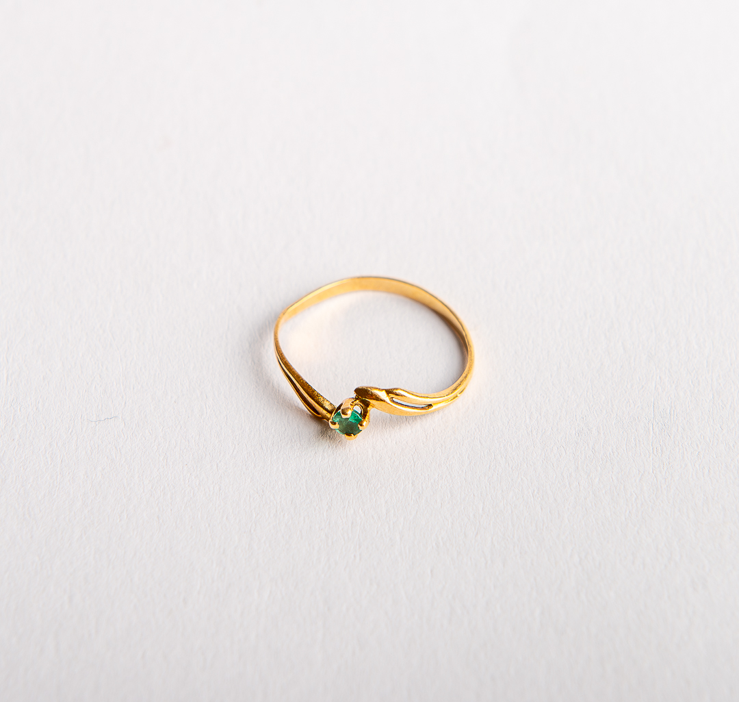 Diamond and emerald ring in 18K yellow gold.