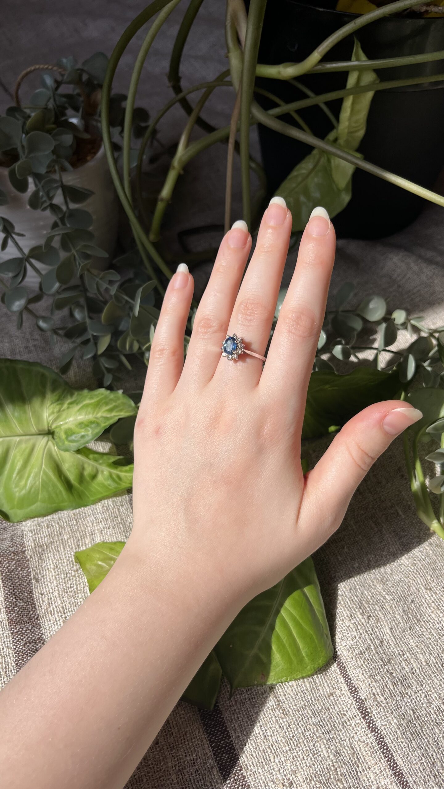Diamond Sapphire Marquise ring in 18k white gold.