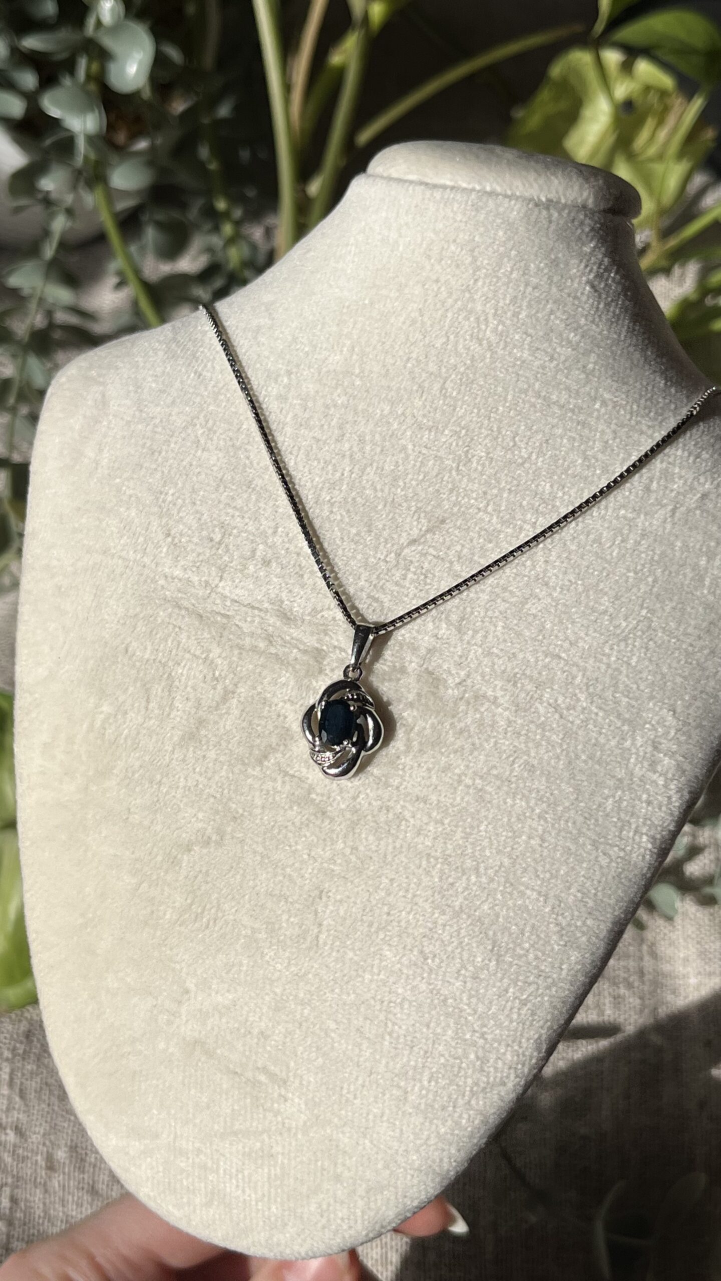 Pendant with natural diamond and natural sapphire.