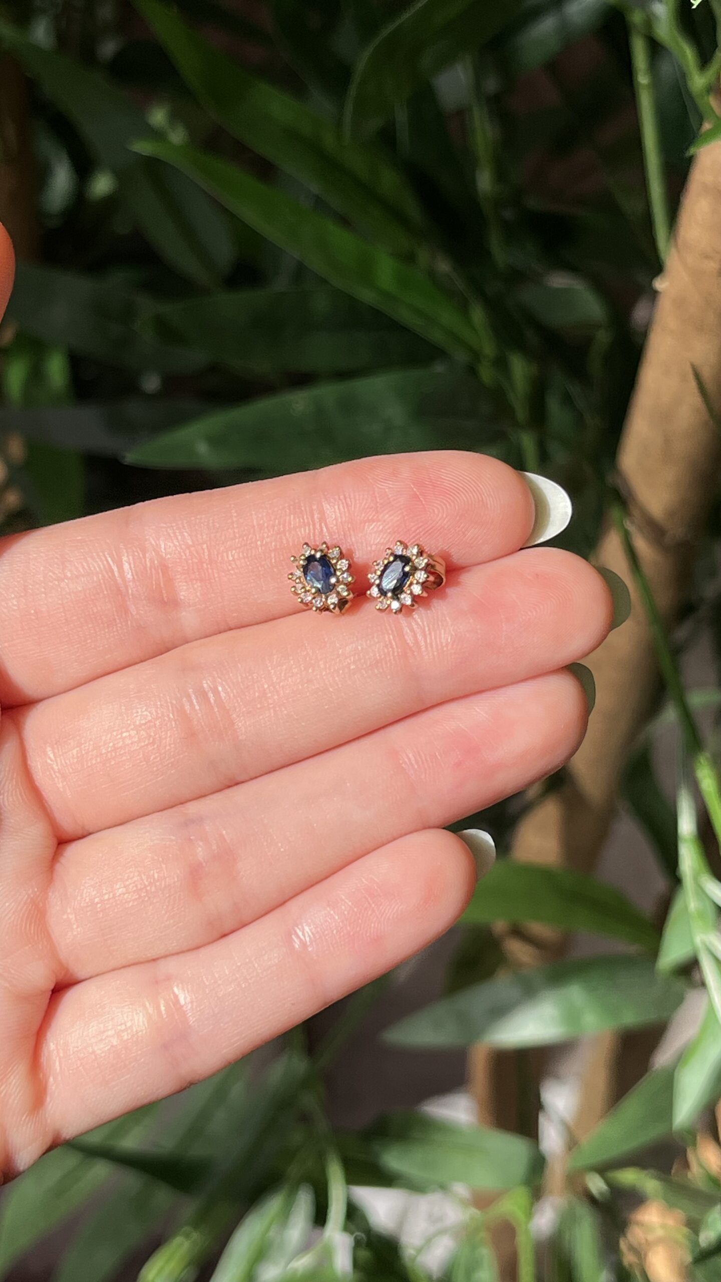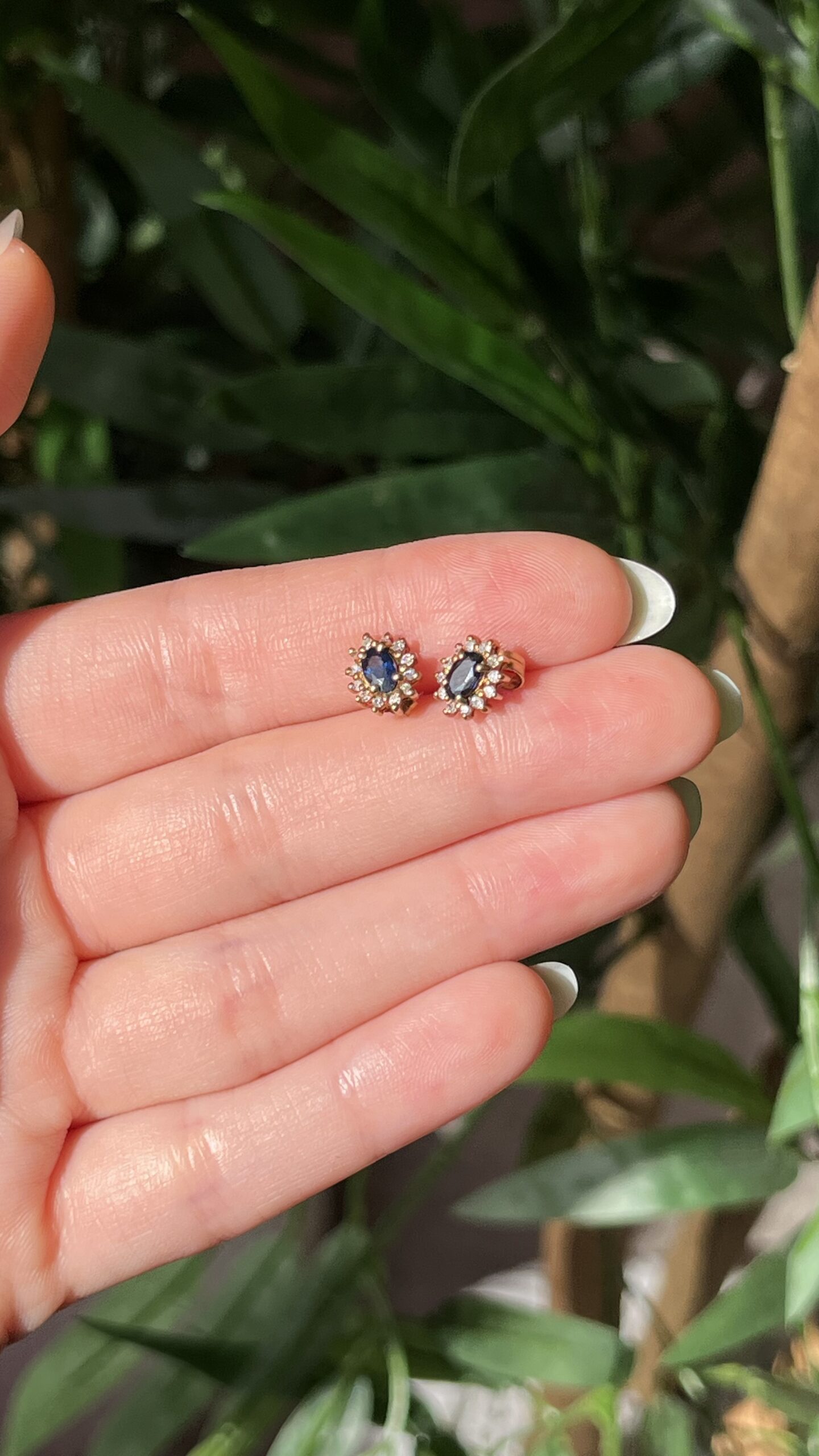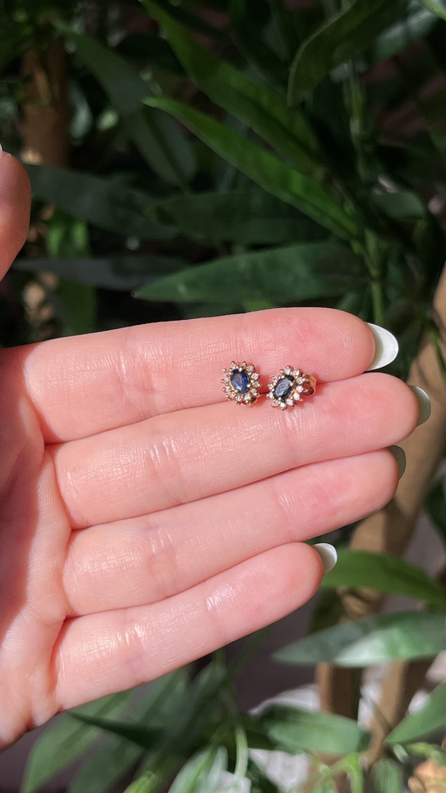 Earrings in natural sapphire and natural diamond.